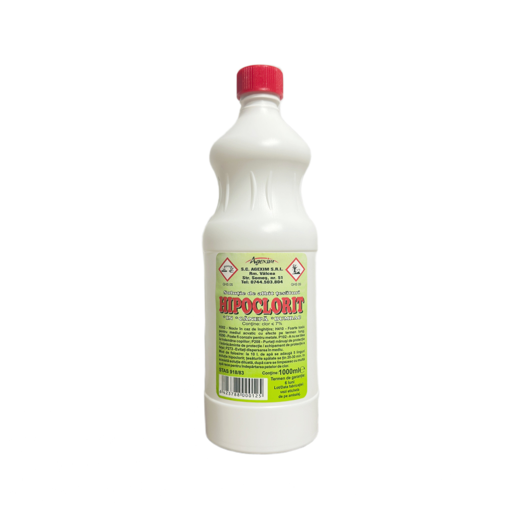 Hipocloritul este un dezinfectant și înălbitor puternic, utilizat pe scară largă pentru igienizarea suprafețelor, albirea rufelor, tratarea apei din piscine și îndepărtarea mucegaiului. Acționează rapid împotriva bacteriilor și virușilor, fiind potrivit pentru utilizări diverse în gospodărie și aplicații tehnice.