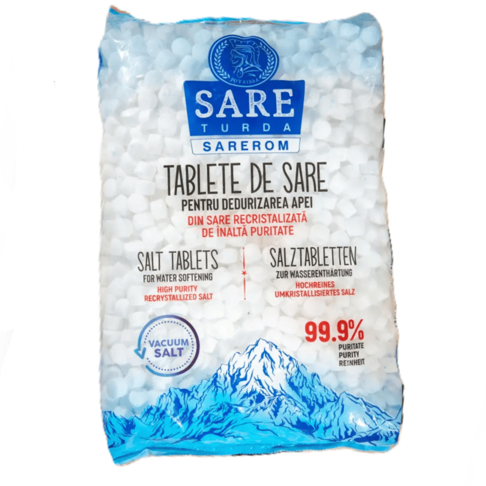 Tabletele de sare sunt comprimate din clorură de sodiu (NaCl) folosite în stațiile de dedurizare pentru regenerarea rășinii, reducând duritatea apei și depunerile de calcar.