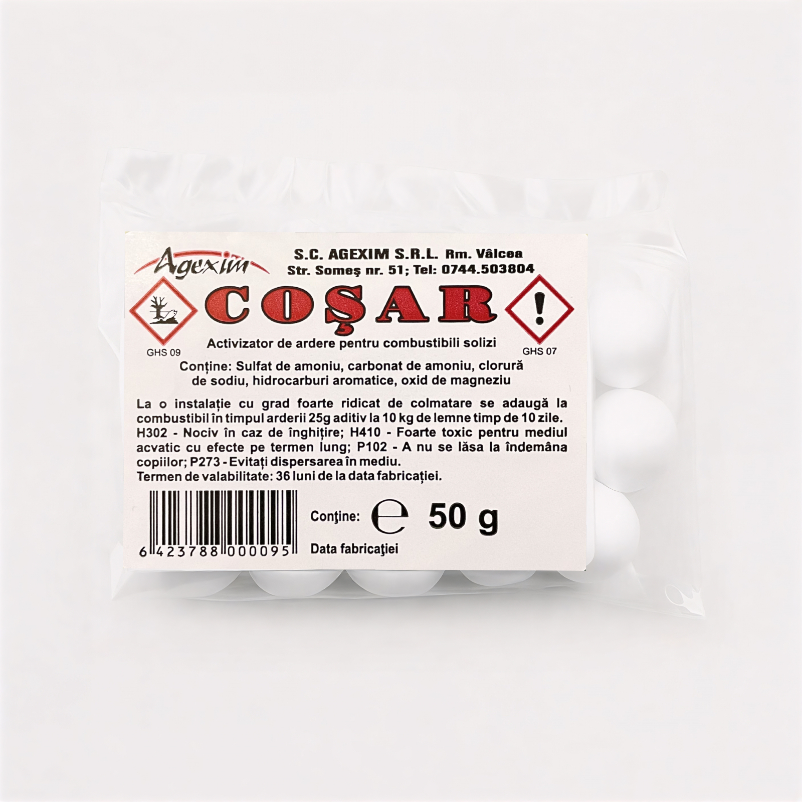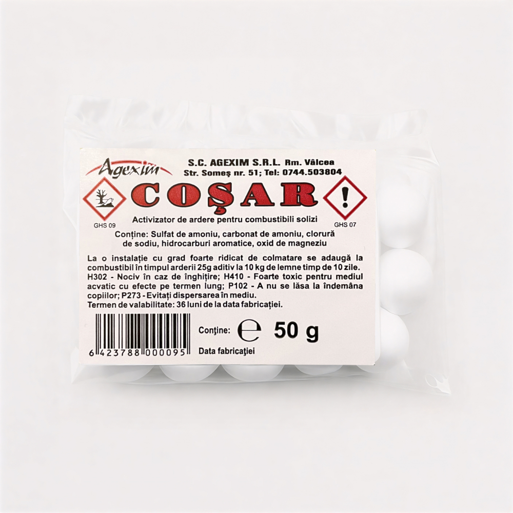 Coșar sub formă de tablete pentru curățarea coșurilor de fum din gospodărie. Ajută la reducerea funinginii, îmbunătățește tirajul și contribuie la siguranța sobelor și șemineelor.